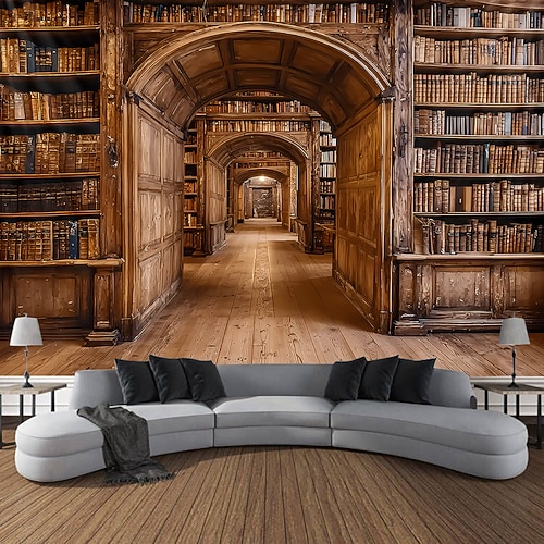 arazzo Coperta Arazzi da Parete libreria Vintage 3D Camera da letto Soggiorno Dormitorio Sfondi di ripresa Decorazioni Parete Porta Sfondo