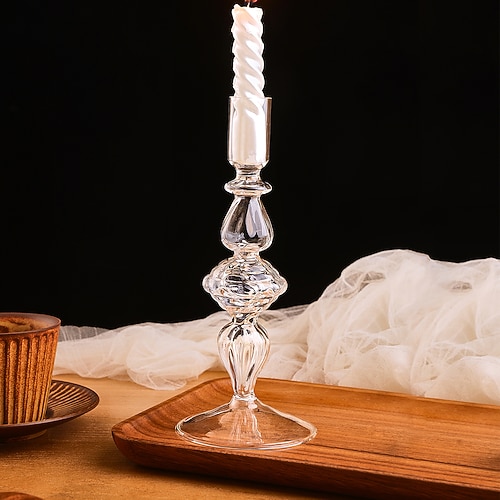 1 candeliere in vetro a strisce diamantate in stile europeo, un candeliere decorativo in vetro trasparente per la casa, adatto per la decorazione della tavola in famiglie, hotel, matrimoni ecc.