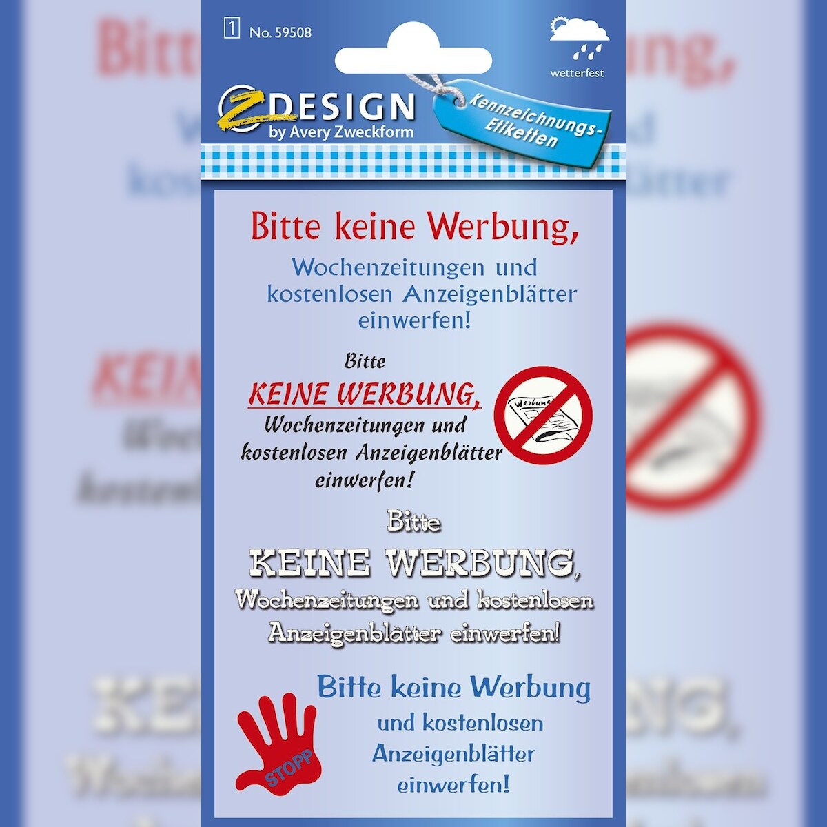 Avery Zweckform® 59508 59508 Home Hinweis-Etikett "Keine Werbung", Kunststoff, 1 Bogen 4 Etiketten