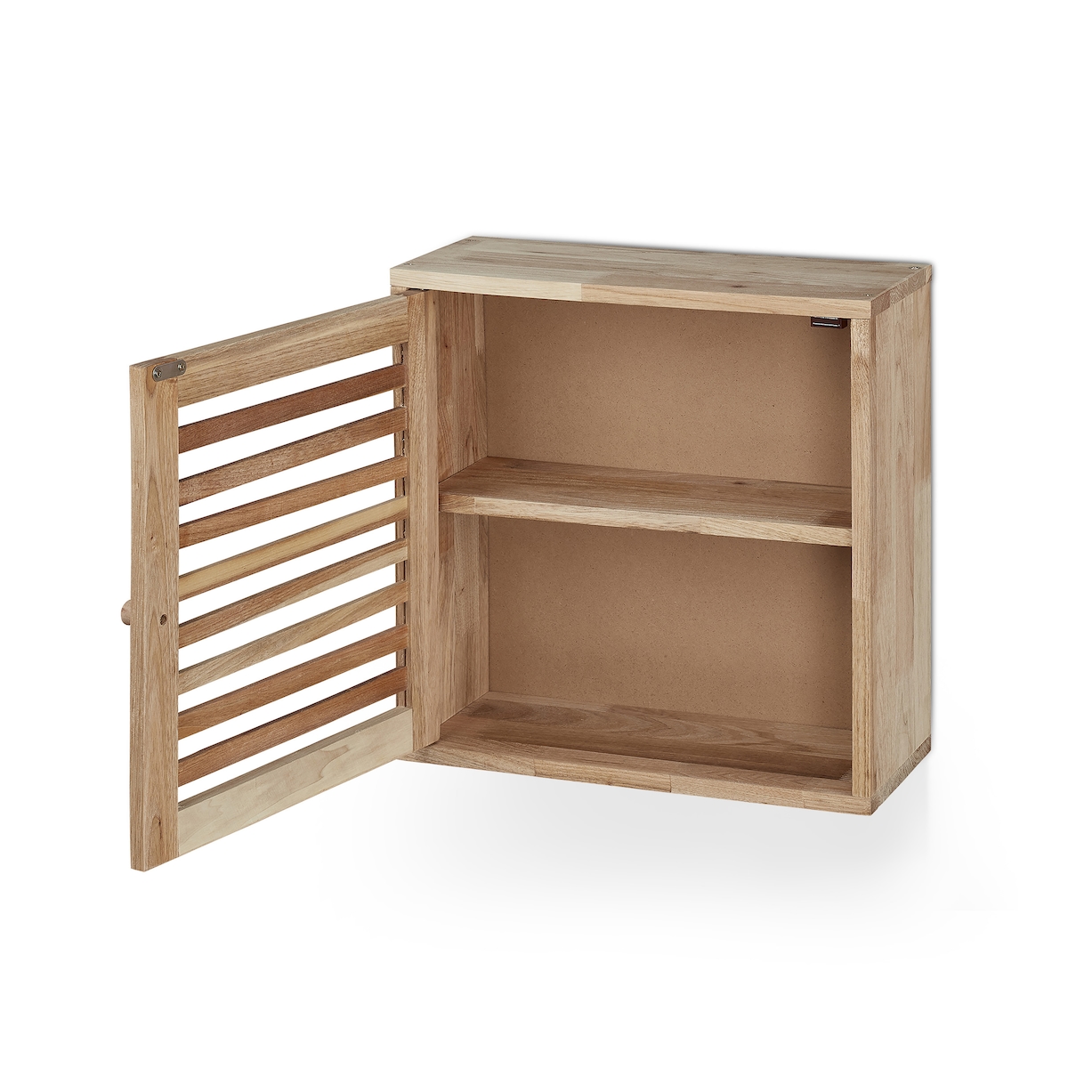 Relaxdays Hängeschrank, Walnuss, HxBxT: 46,5 x 35 x 21 cm, Lamellentüren, 3 Fächer, Wandschrank Badezimmer, Küche, natur