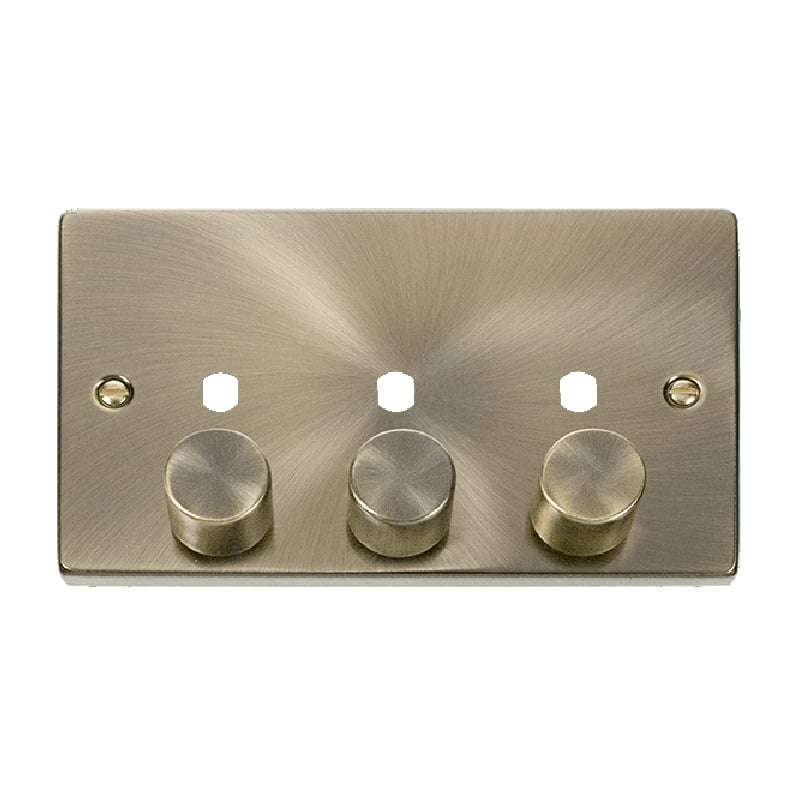 Click Deco 3 Gang Unfurnished Dimmer Plate and Knob (1200W Max) Antique Brass