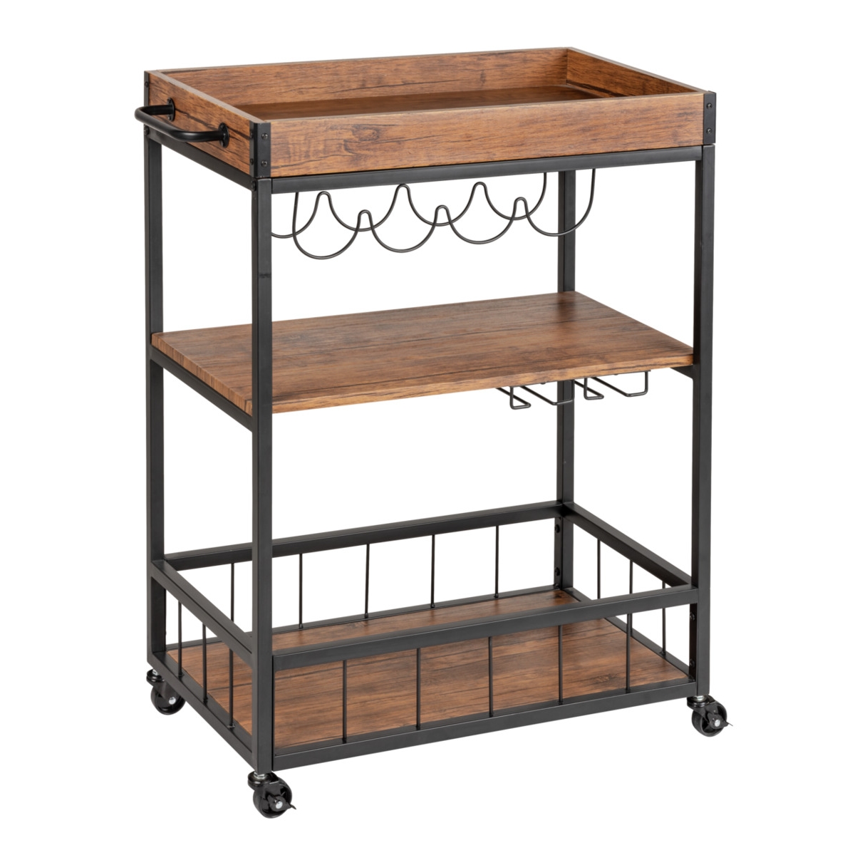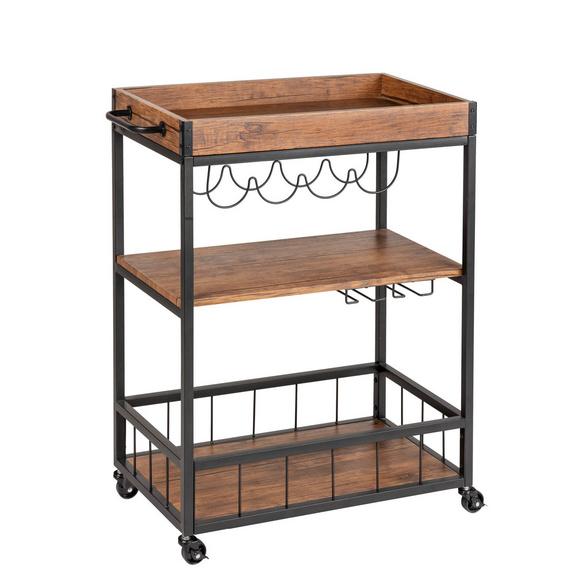 Küchenwagen BASIC BY BALCULINA "Bartender,Rollwagen,Küchenwagen,Servierwagen", anthrazitfarben, eichefarben artisan, B:75cm H:79cm T:40cm, FSC-zertifizierter Holzwerkstoff, Rollwagen, Küchenwagen, Breite 75 cm, auf 4 Rollen, diverse Ablagen
