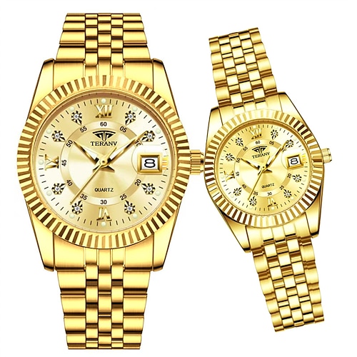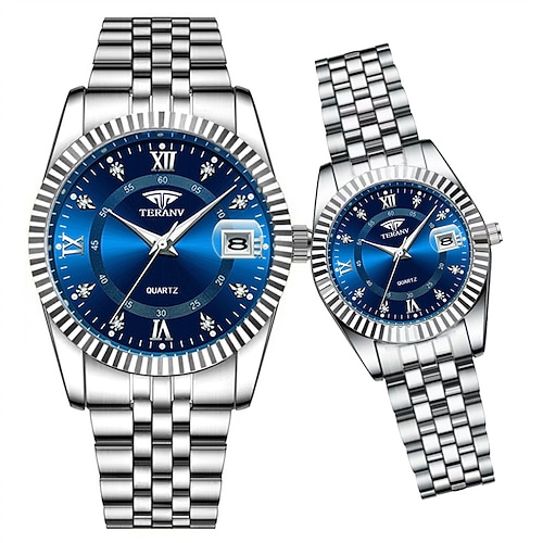 due nuovi orologi da polso al quarzo alla moda con quadrante romano per coppie, resistenza all'acqua IPX7, display luminoso del calendario, cinturino in lega - regalo ideale per appuntamenti informali