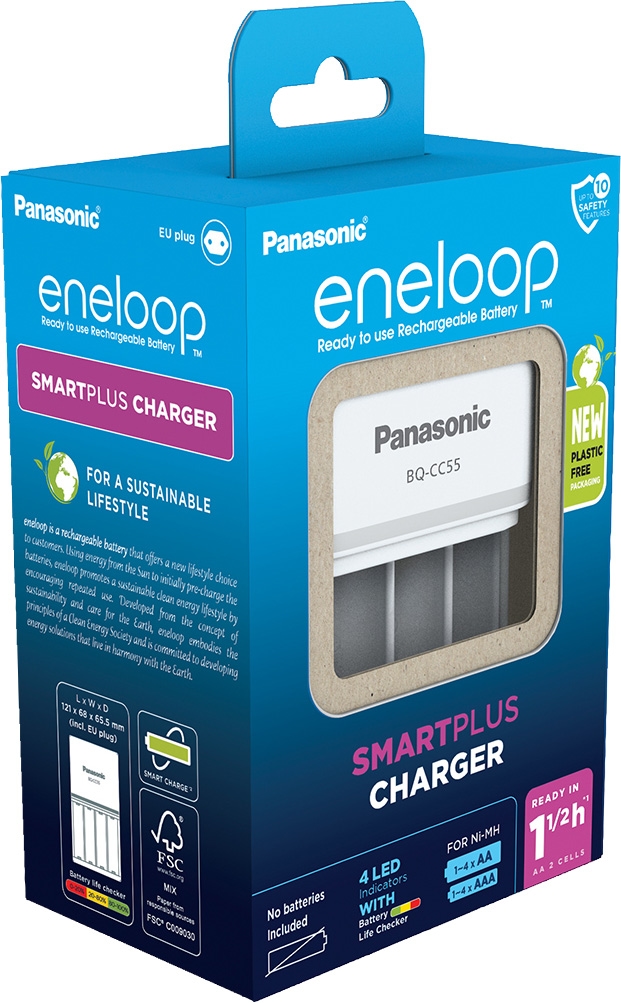Eneloop Akku NiMH, Universal Ladegerät, Smartplus Charger ohne Akkus, für AA/AAA, Retail-Box