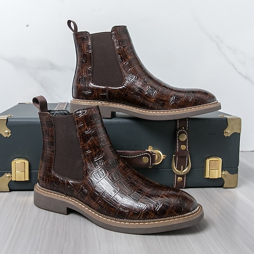 stivali chelsea da uomo in similpelle marrone: eleganti e raffinati, ideali per eventi formali, abbigliamento casual da lavoro e abbigliamento quotidiano