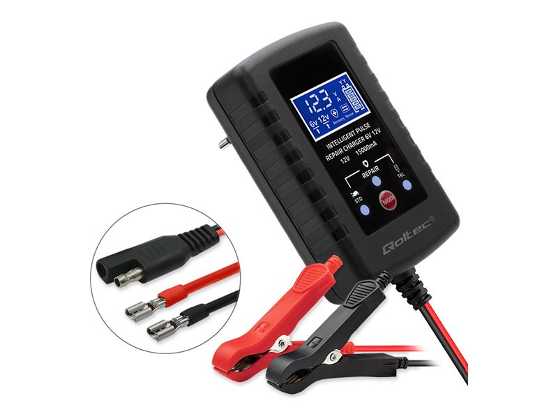 Qoltec Automatisches Batterieladegerät AGM GEL STD 6V 12V | Gleichrichter 30W mit Reparaturfunktion und LED-Anzeige | 2A | LED