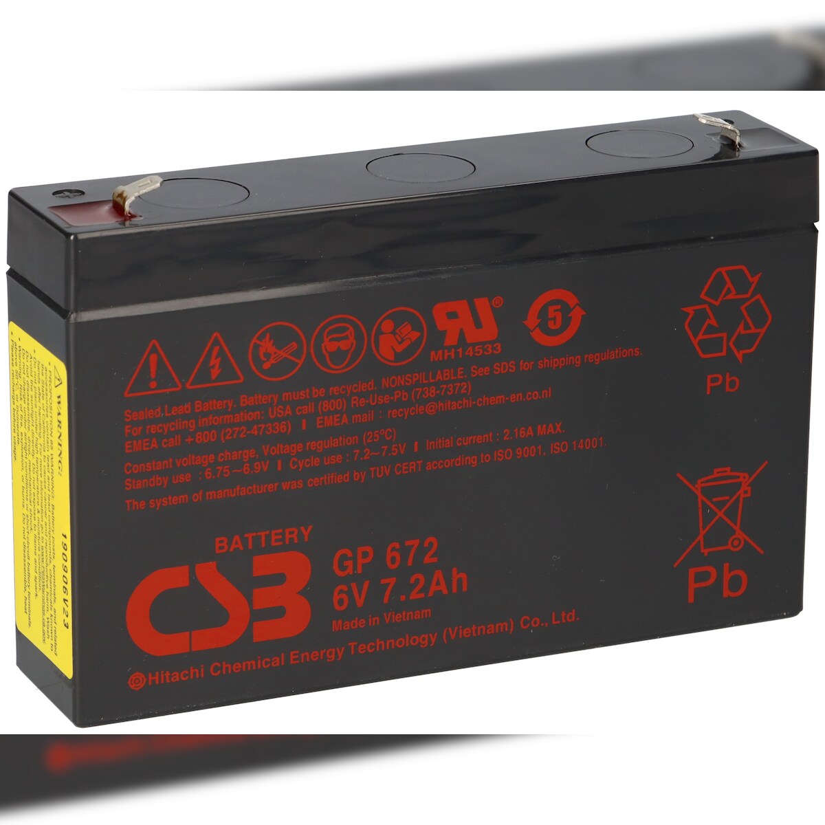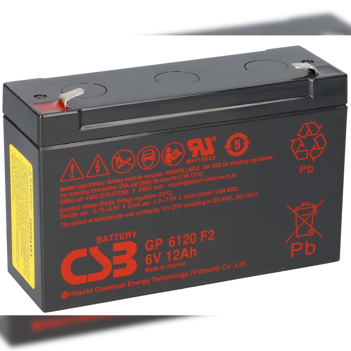 CSB Bleiakku 6V 12Ah GP6120F2 Hitachi wartungsfrei AGM Bleibatterie