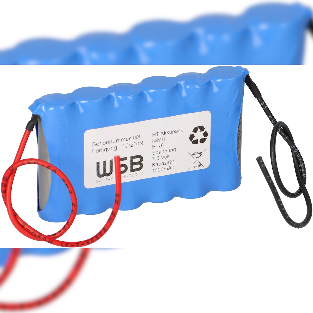 Akkuman Akku für Notleuchten 7,2V 2100mAh NiMH 4/5 A F1x6 20cm Kabel