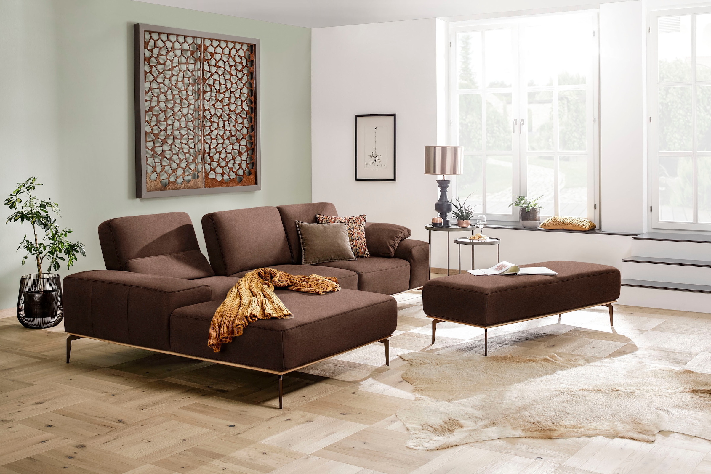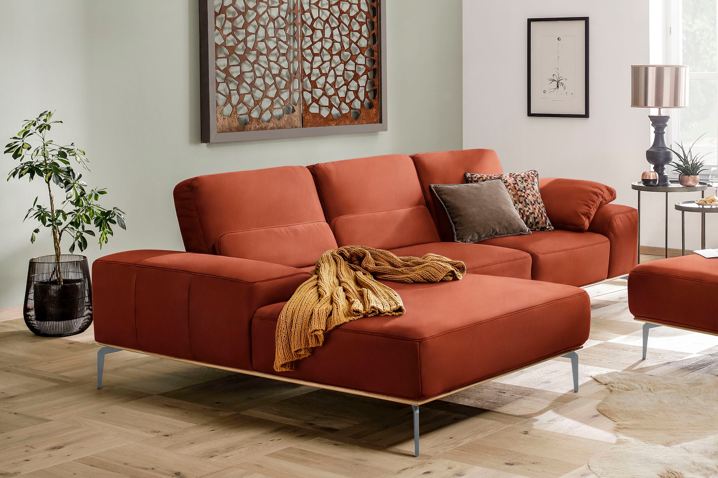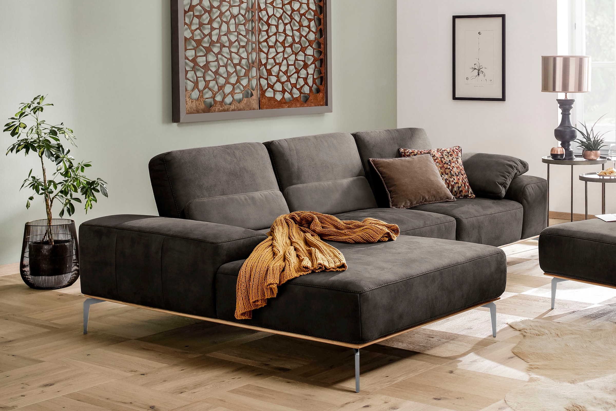 Ecksofa W.SCHILLIG "valentinoo, Designsofa, bequem, elegant und zeitlos, L-Form", grau (grau z73), B:299 H:83 T:178, Longlife Xtra-Leder Z73: Naturwalkleder der Luxusklasse aus den erlesensten Rohhäuten. Hautstärke 1, 1 – 1, 3 mm, Sofas, inklusive...