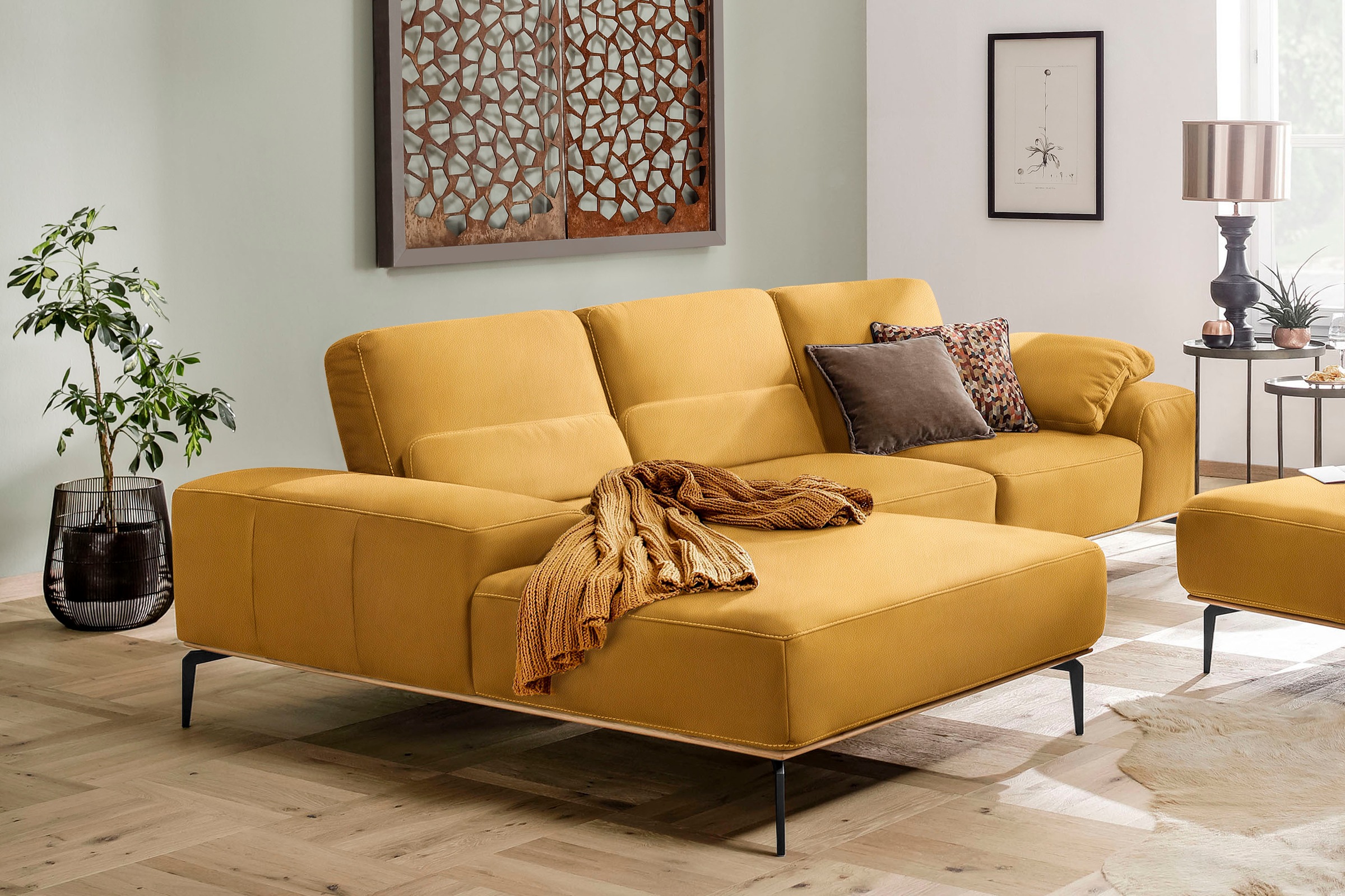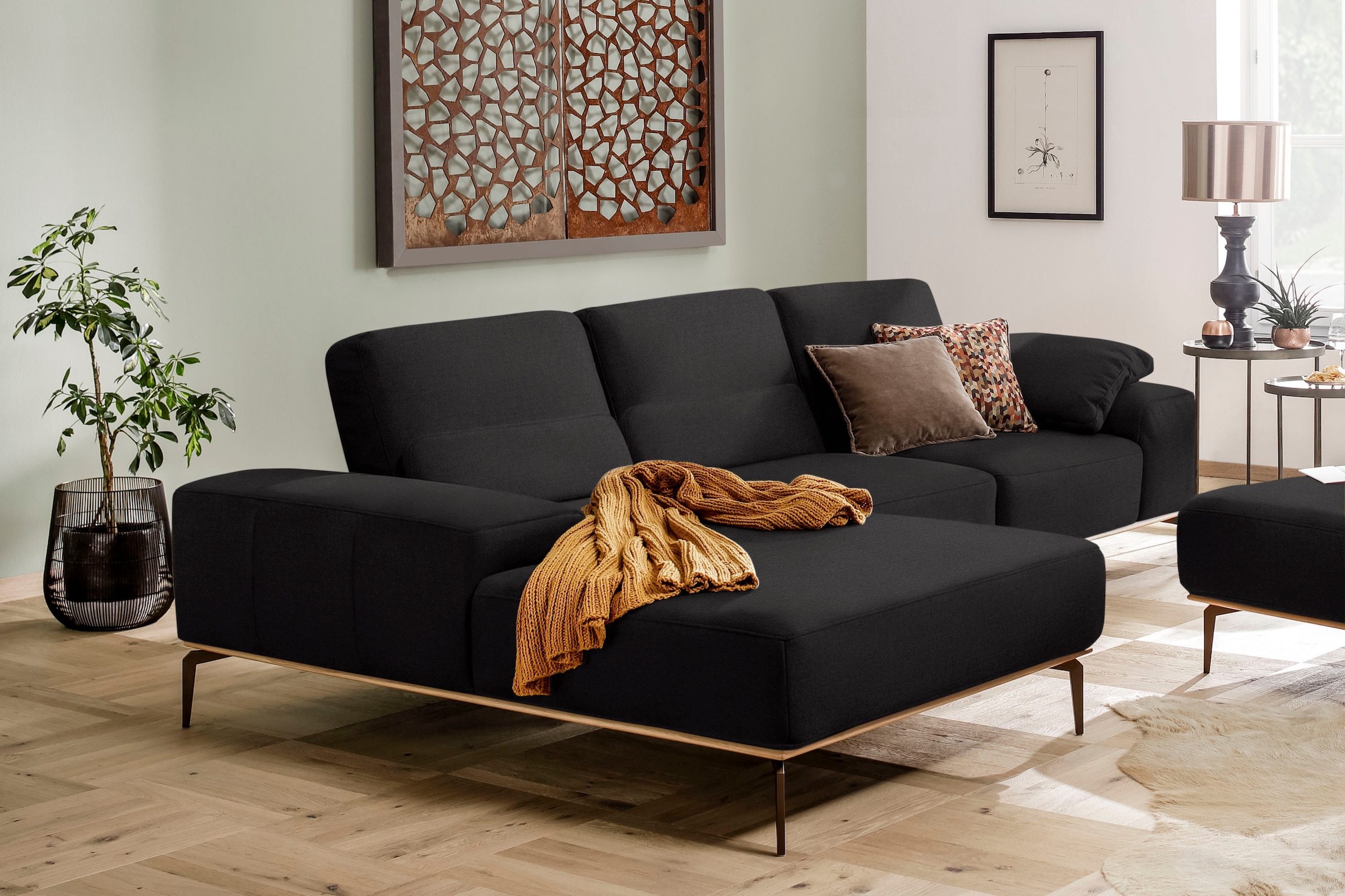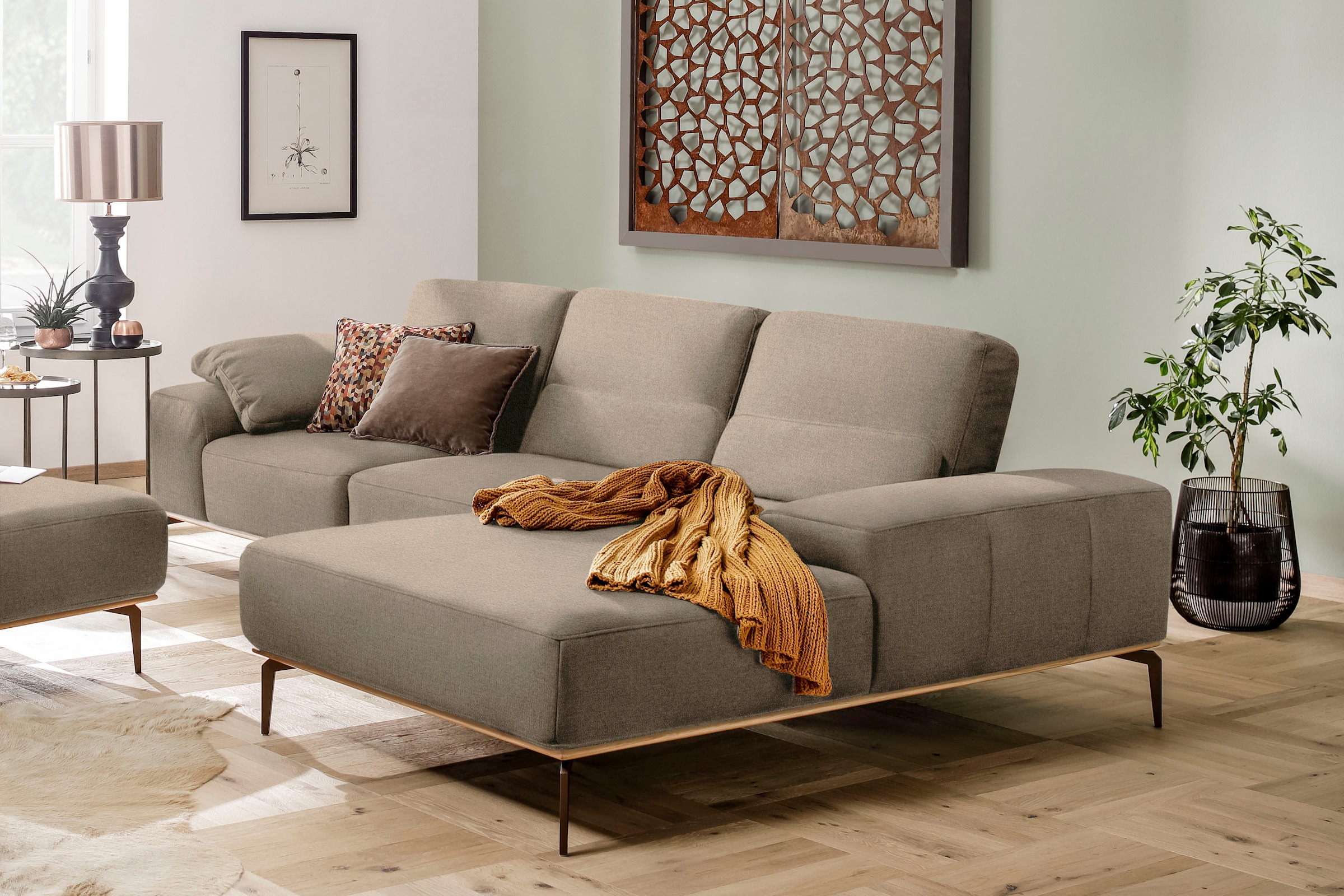 Ecksofa W.SCHILLIG "valentinoo, Designsofa, bequem, elegant und zeitlos, L-Form", grau (grau z73), B:299 H:83 T:178, Longlife Xtra-Leder Z73: Naturwalkleder der Luxusklasse aus den erlesensten Rohhäuten. Hautstärke 1, 1 – 1, 3 mm, Sofas, inklusive...