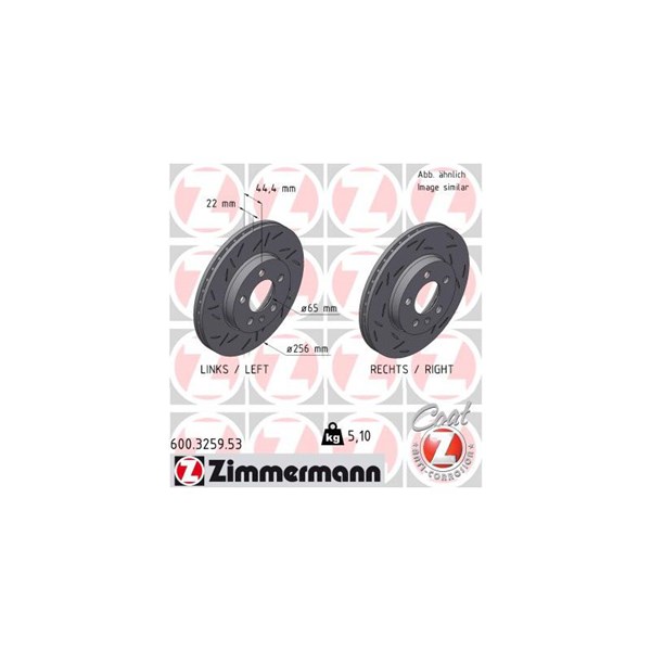 Jarrulevy Tuuletettu, Etuakseli Zimmermann 600.3259.53 - audi a1 sportback, seat ibiza v, skoda kamiq, scala, vw polo vi - OE 2Q0 615 301 G