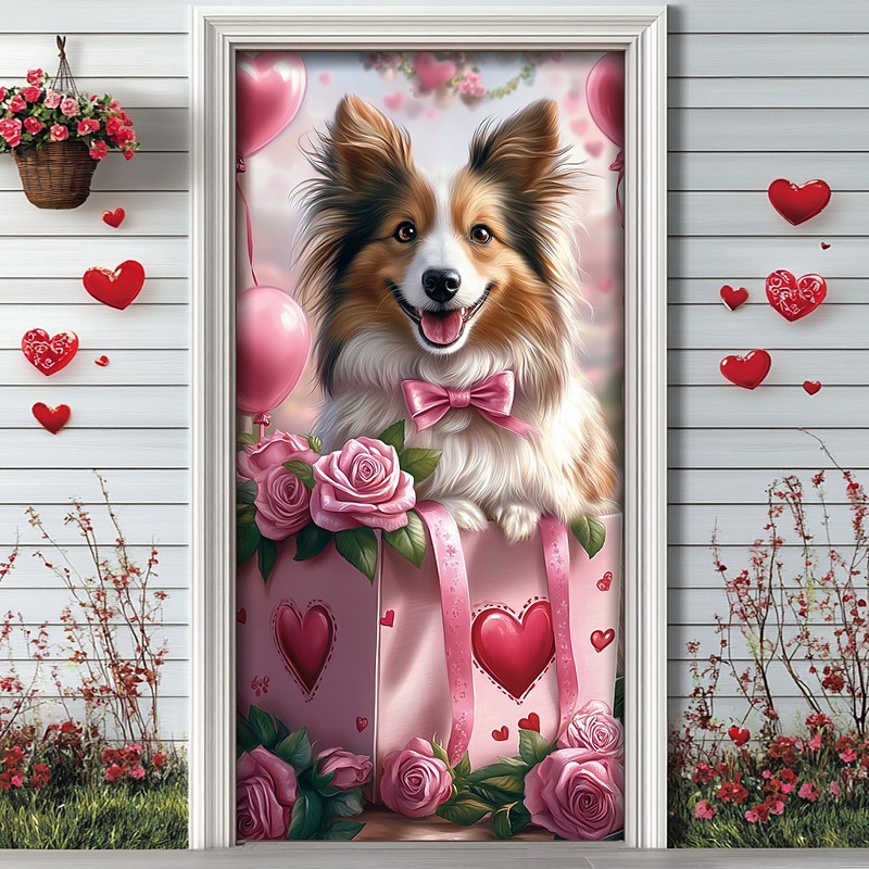 Wedding Outdoor Decorations Door Covers Door Tapestry Door Curtain Decoration Backdrop Indoor/Outdoor Door Banner for Front Door Farmhouse Hearts Dog