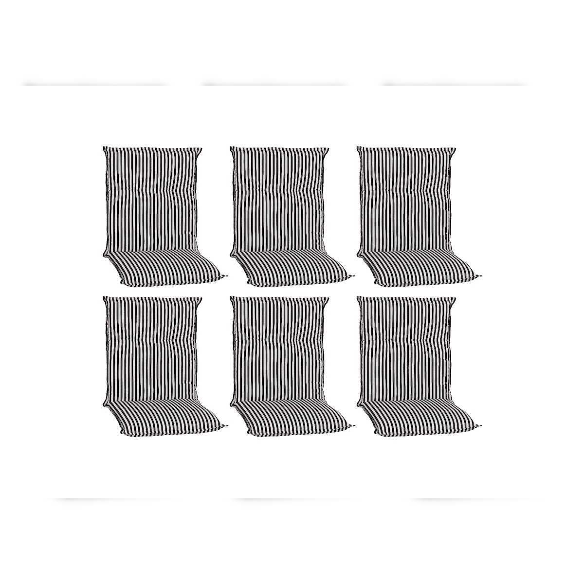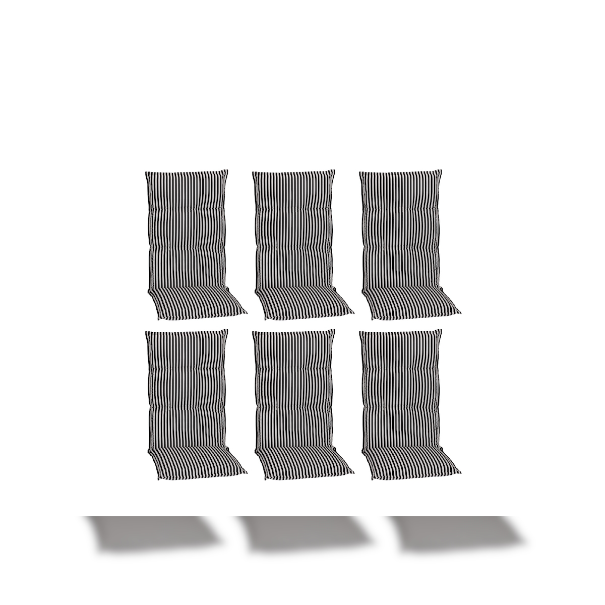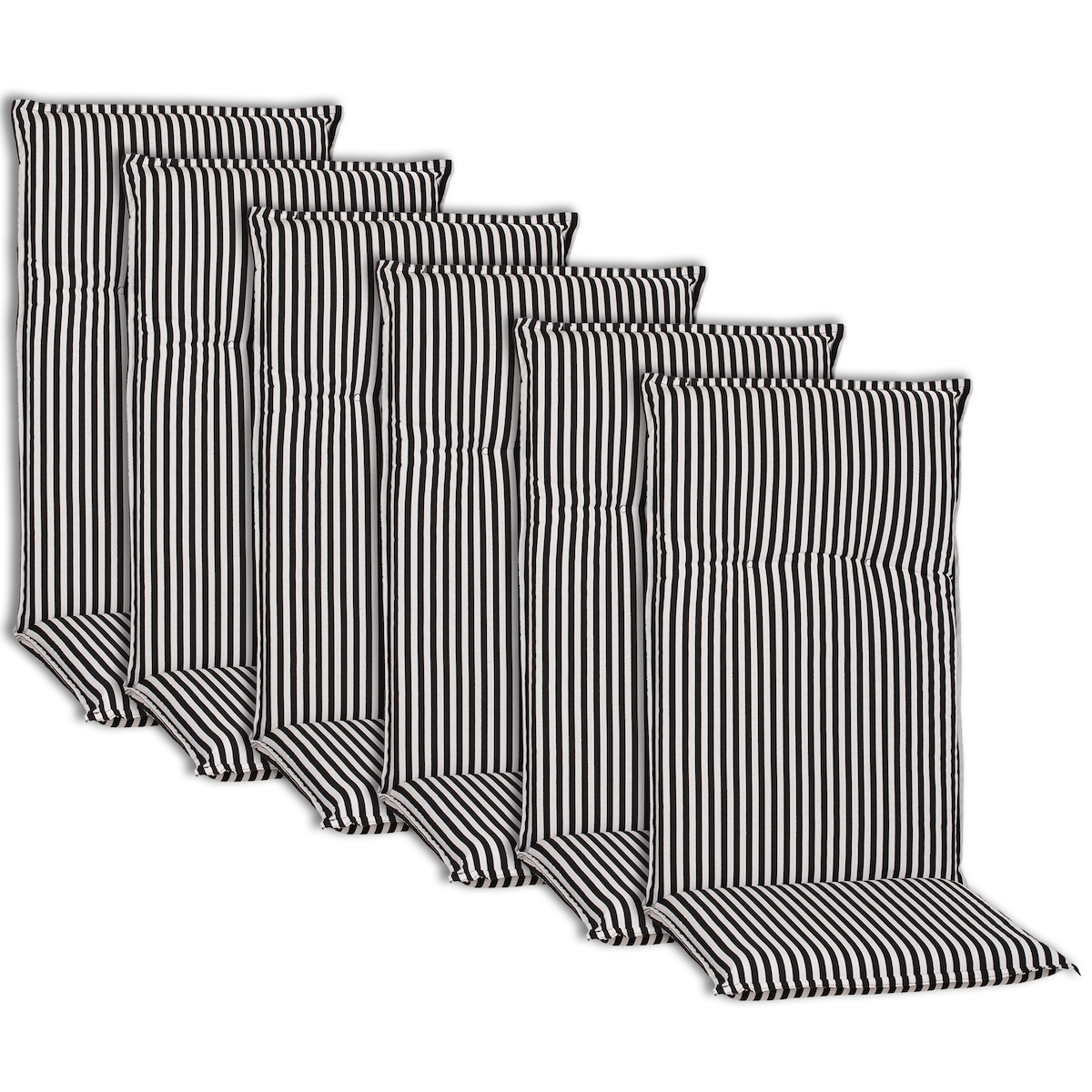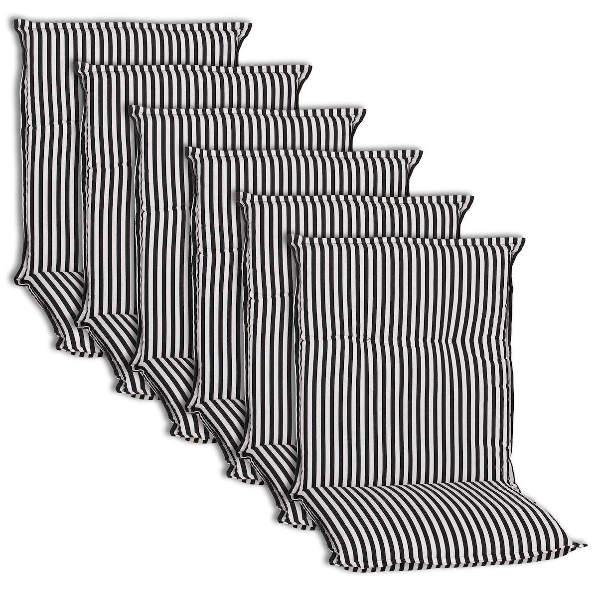 NYVI Hochlehnerauflagen Piemont - Polsterauflage mit Halteband & Bindebändern Dessin:Schwarz / Weiß BE807,Größe:6x Hochlehnerauflage