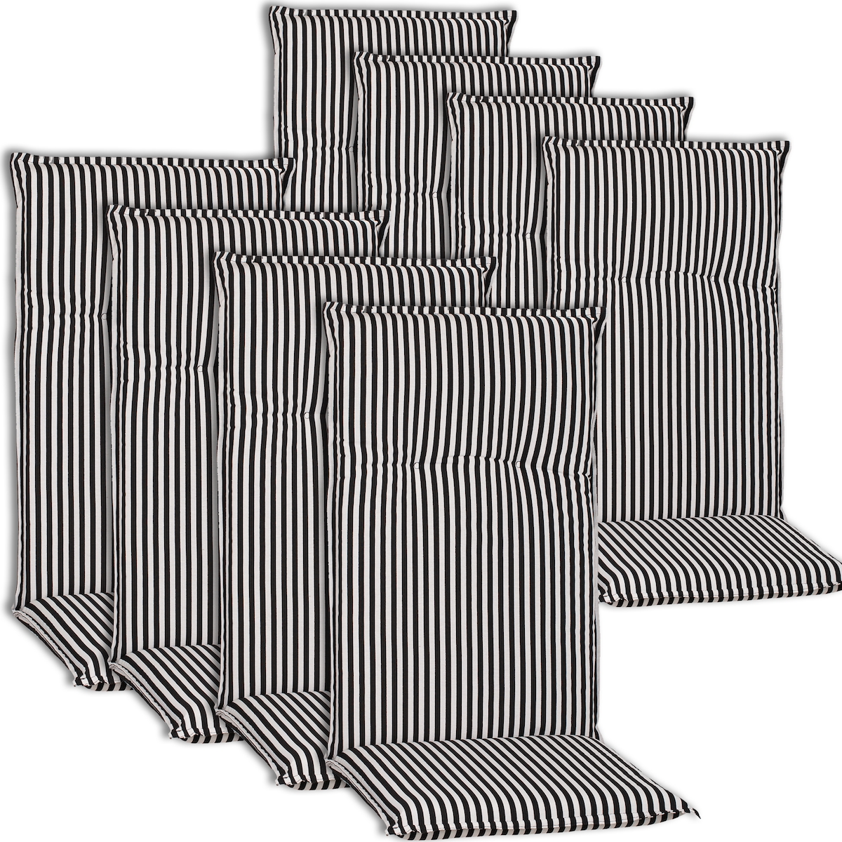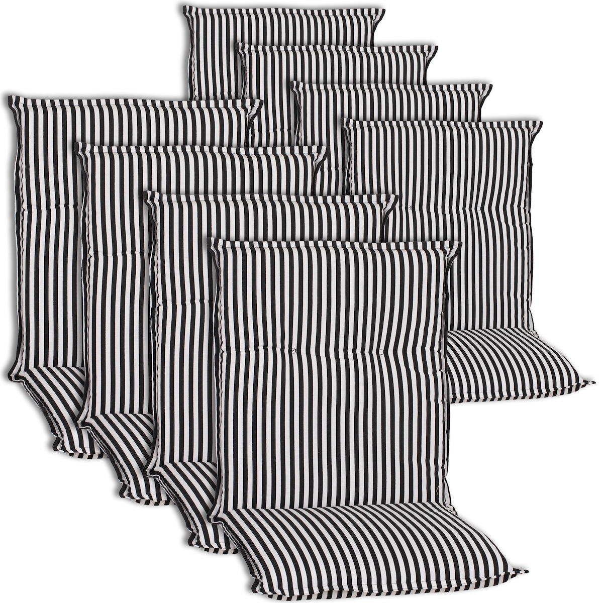 NYVI Hochlehnerauflagen Piemont - Polsterauflage mit Halteband & Bindebändern Dessin:Schwarz / Weiß BE807,Größe:8x Hochlehnerauflage