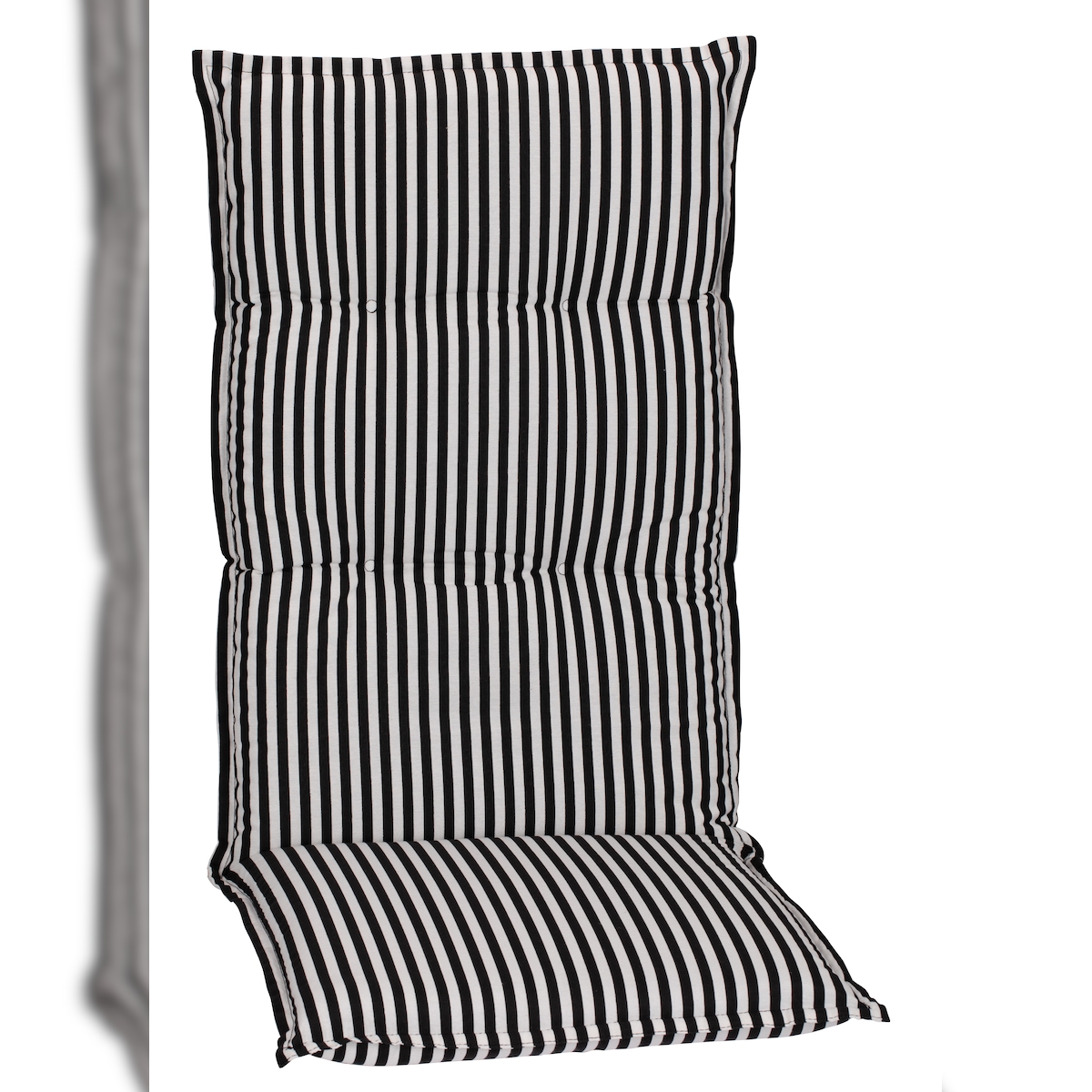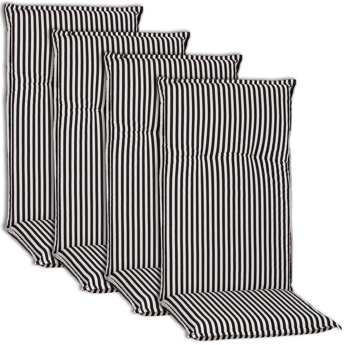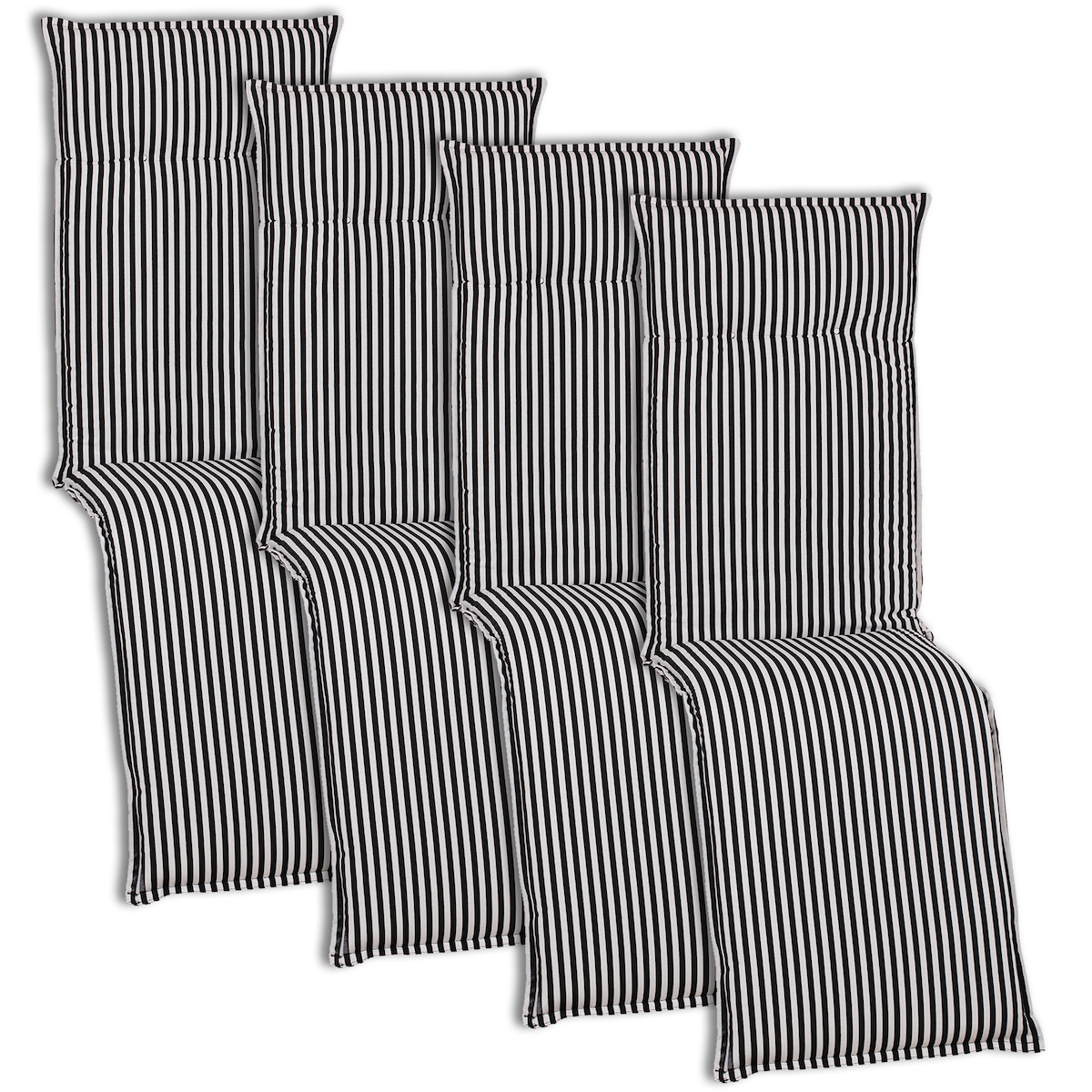 NYVI Hochlehnerauflagen Piemont - Polsterauflage mit Halteband & Bindebändern Dessin:Schwarz / Weiß BE807,Größe:4x Hochlehnerauflage