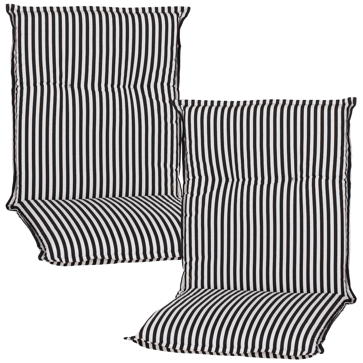 NYVI Hochlehnerauflagen Piemont - Polsterauflage mit Halteband & Bindebändern Dessin:Schwarz / Weiß BE807,Größe:2x Hochlehnerauflage