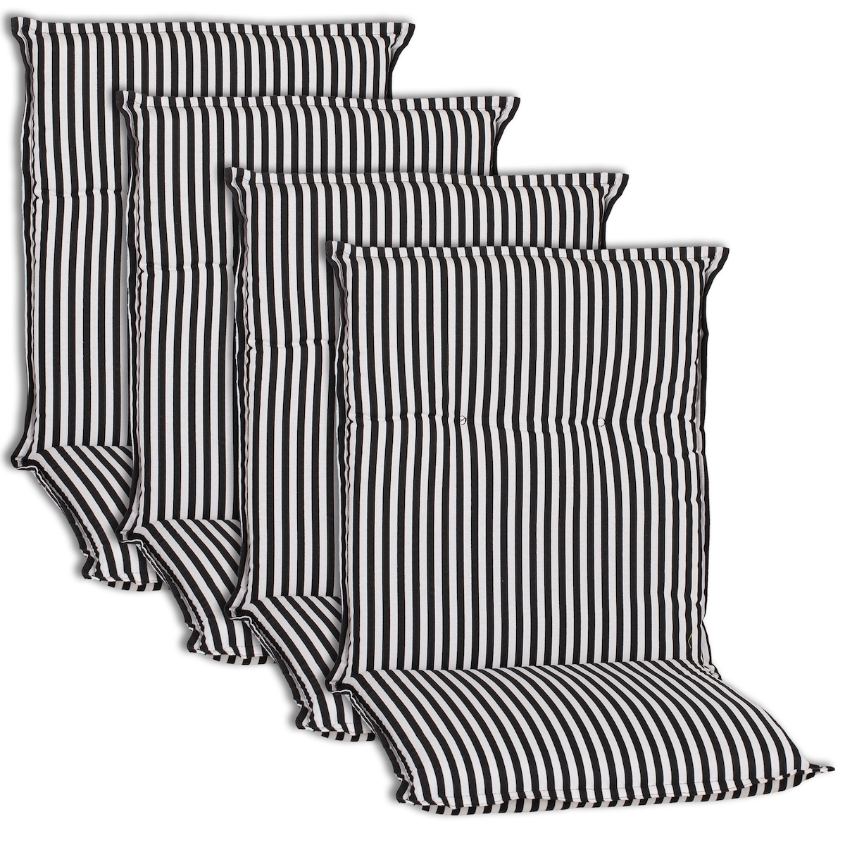 NYVI Niedriglehner Auflagen Piemont - Polsterauflage mit Halteband & Bindebändern Dessin:Schwarz / Weiß BE807,Größe:4x Niedriglehnerauflage