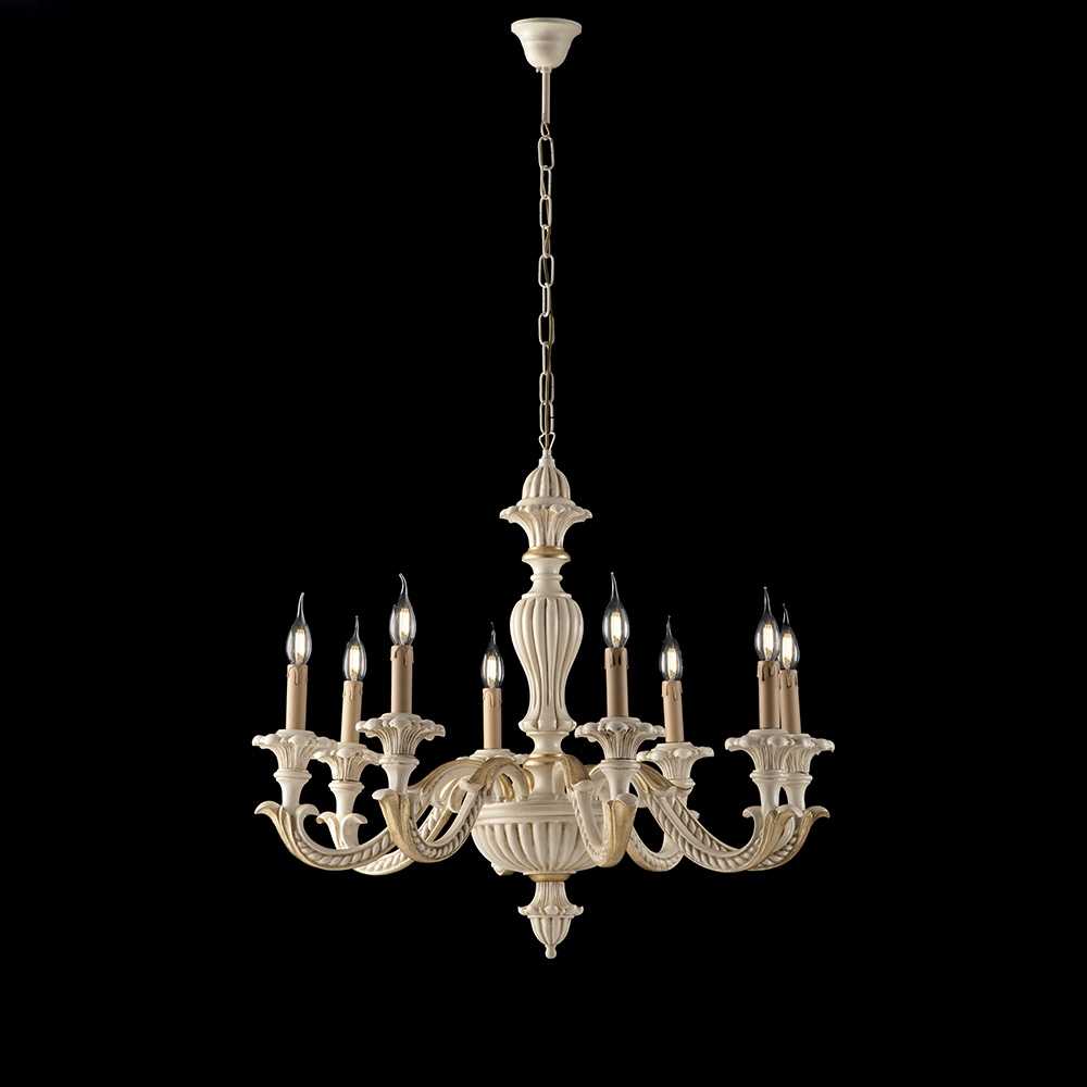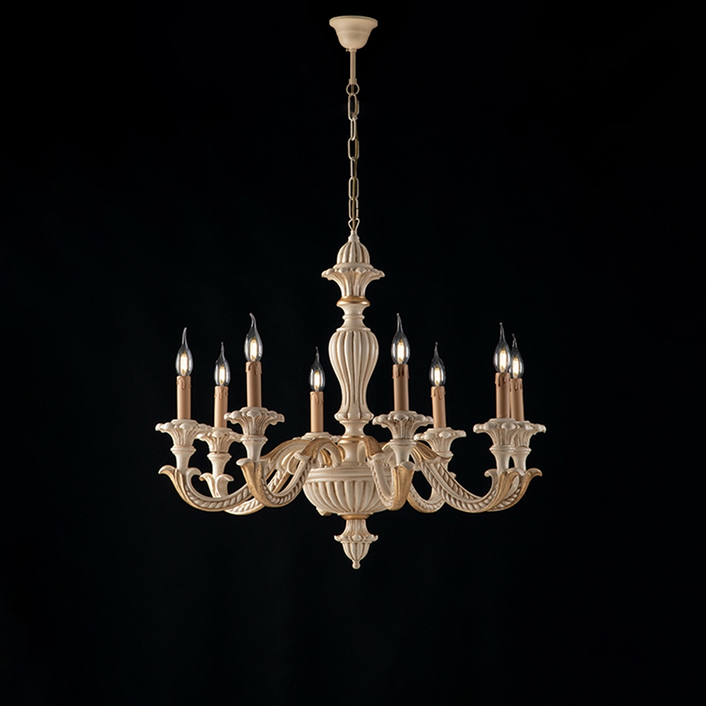 Bonetti Illumina Leonardo - Schäbiger weißer Holzkronleuchter 6 Lichter 130 - Ø74 - BL180-6-BCO
