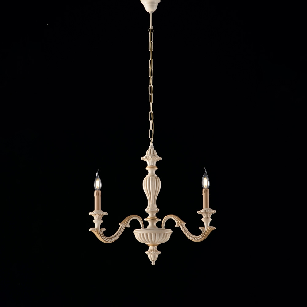 Bonetti Illumina Leonardo - Schäbiger weißer Holzkronleuchter 3 Lichter 117 - Ø43 - BL180-3-BCO