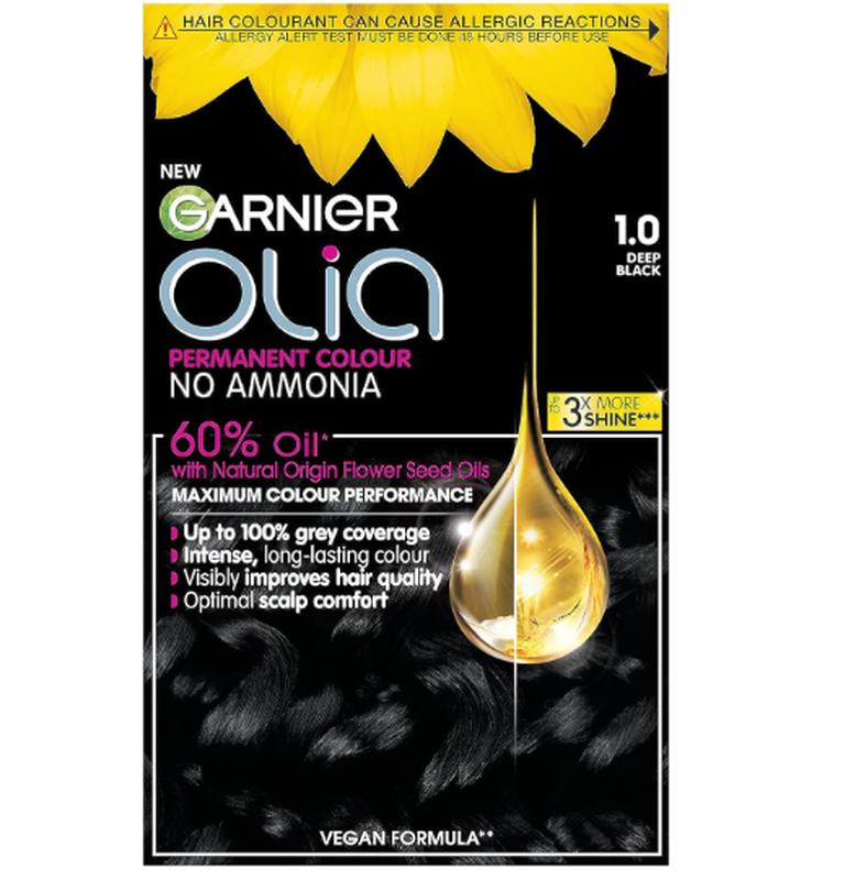 Garnier Olia No Ammonia Permanent Hair Dye Midnight 1.0 Deep Black 1 colourant Cream 1 developer cream 1 conditioner