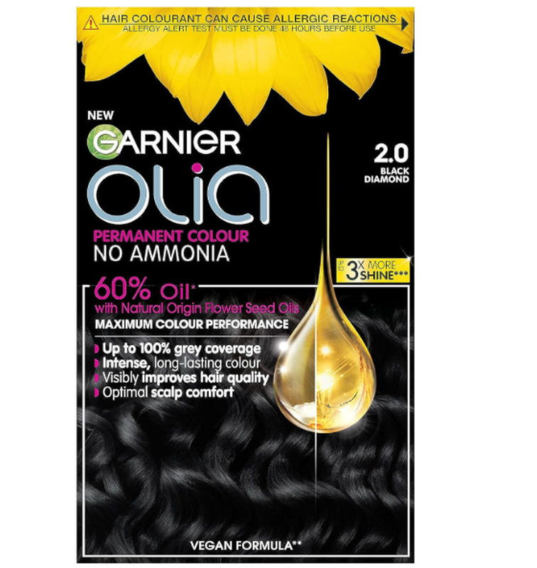 Garnier Olia No Ammonia Permanent Hair Dye 2.0 Black Diamond 1 colourant Cream 1 developer cream 1 conditioner