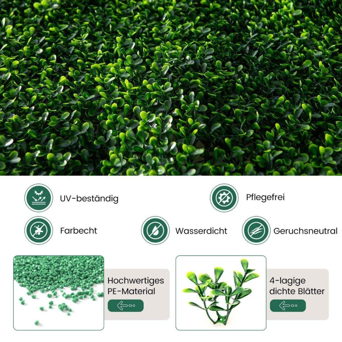 Pakke med 12 kunstig hæk plantevæg 50 x 50 cm paneler med buksbom blade grønne