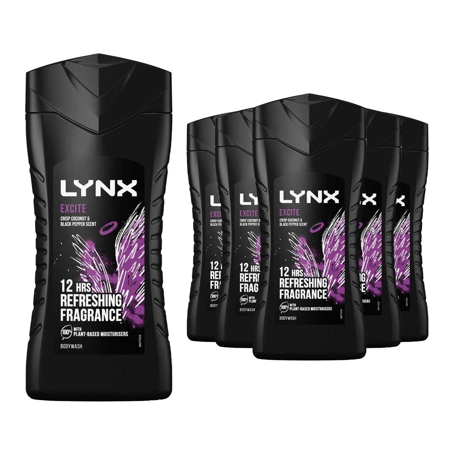 Lynx Mens Excite 12-H Refreshing Fragrance Shower Gel Body Wash for Men, 6x225ml - One Size | Lynx Sale | Discount Designer Brands