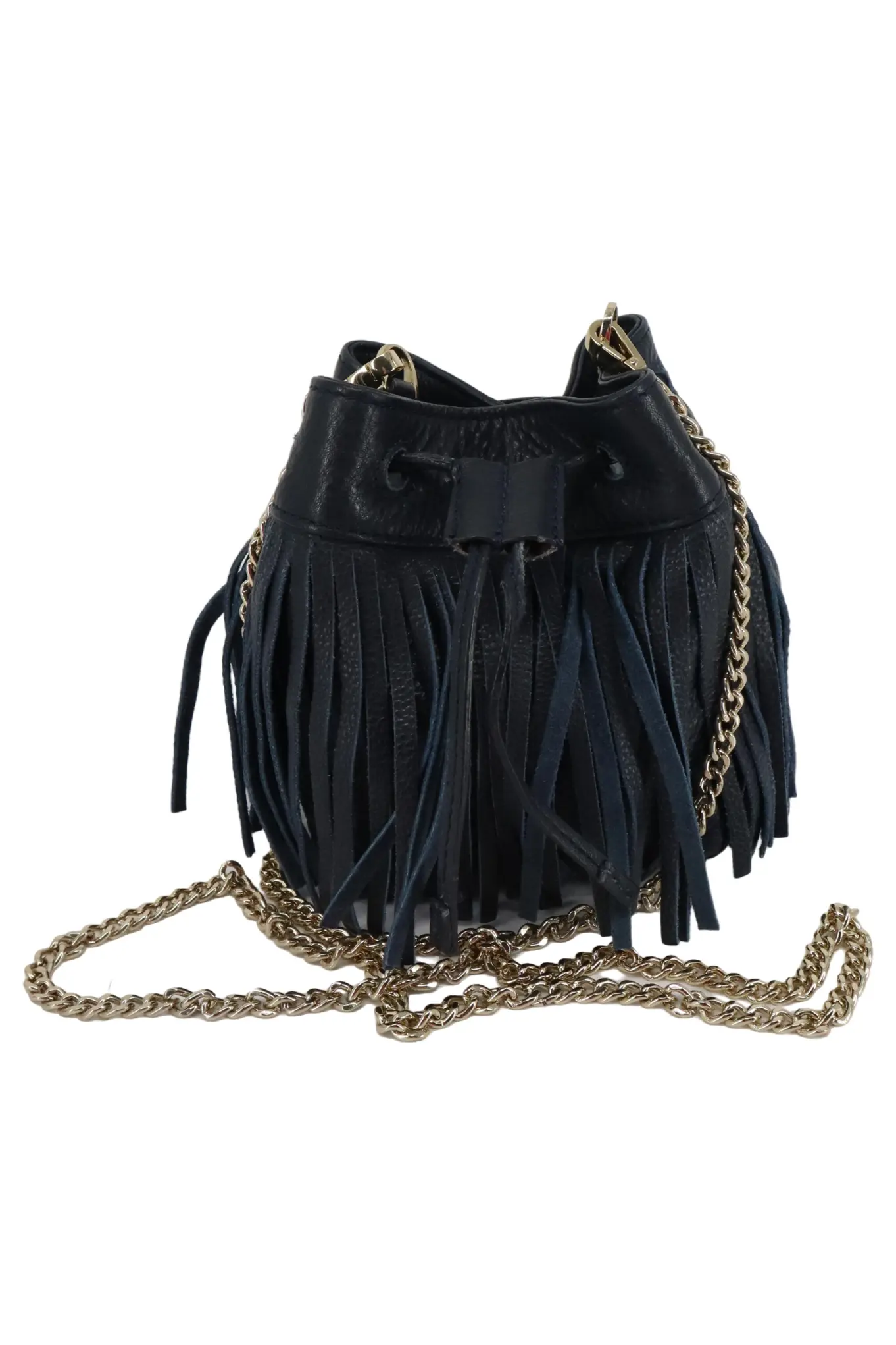 WHISTLES Leder Umhängetasche Schwarz Fransen Boho Chic