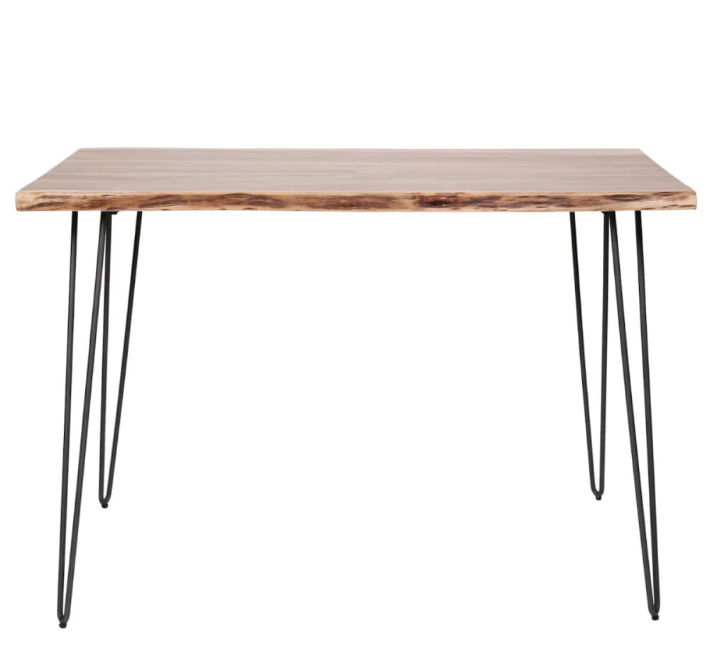 Tavolo alto in legno di acacia con base in acciaio