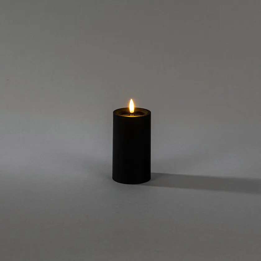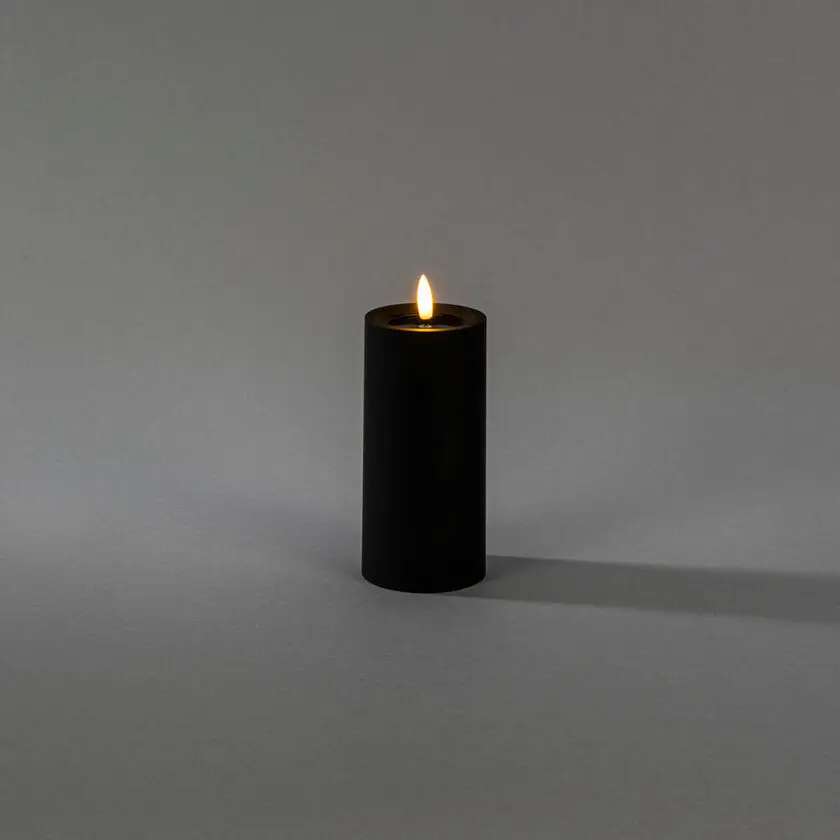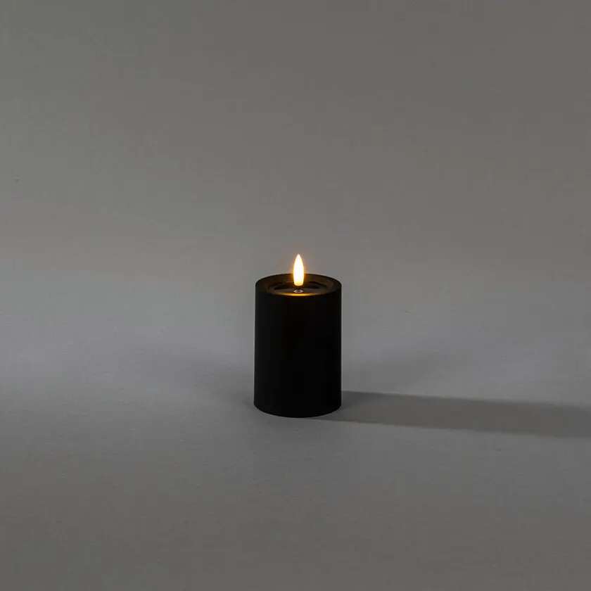 Konstsmide - Bougie à LED bloc sur piles avec flamme vacillante - Ø 7 x 10 cm - IP44 - noir