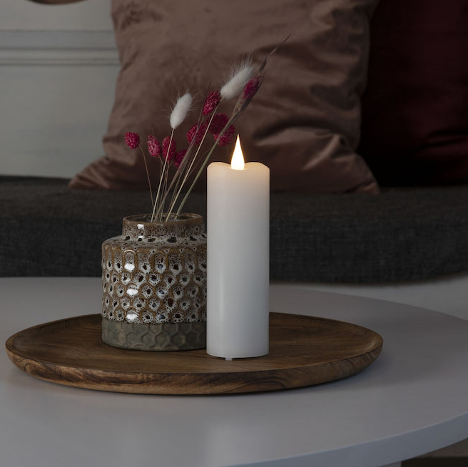 Konstsmide - Bougie LED bloc sur piles avec flamme vacillante - Ø 7 x 15 cm - IP44 - blanc