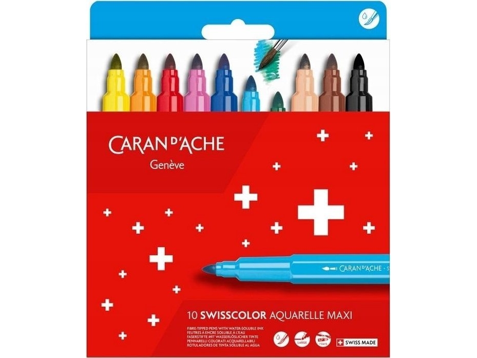 Caran d`Arche vesivärimerkkaimet CARAN D'ACHE Swisscolor Maxi, 10 kpl, sekavärit