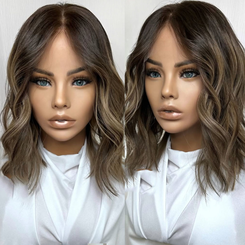 Brazilian Unprocessed Virgin Hair 5x5 Lace Closure Glueless Wig Highlighted Colored 13x4 Short Bob Lace Front Human Hair Wig Wavy Brown Auburn Wig Natural Hairline Pre-Plucked