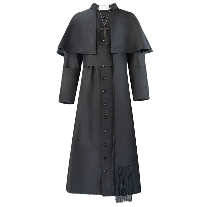 Retro Vintage Medieval Coat Necklace Trench Coat Witch Plague Doctor Priest Solid Colored Fancy Dress Men's Steampunk Walpurgis Night Halloween Carnival Masquerade Party / Evening Stage Adults' Coat