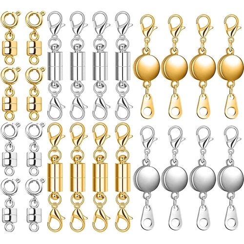24 fermagli e chiusure magnetiche per collane, 3 stili, rotondi, cilindrici, tubolari, connettori con chiusura magnetica per gioielli, estensori per braccialetti con chiusura magnetica per la