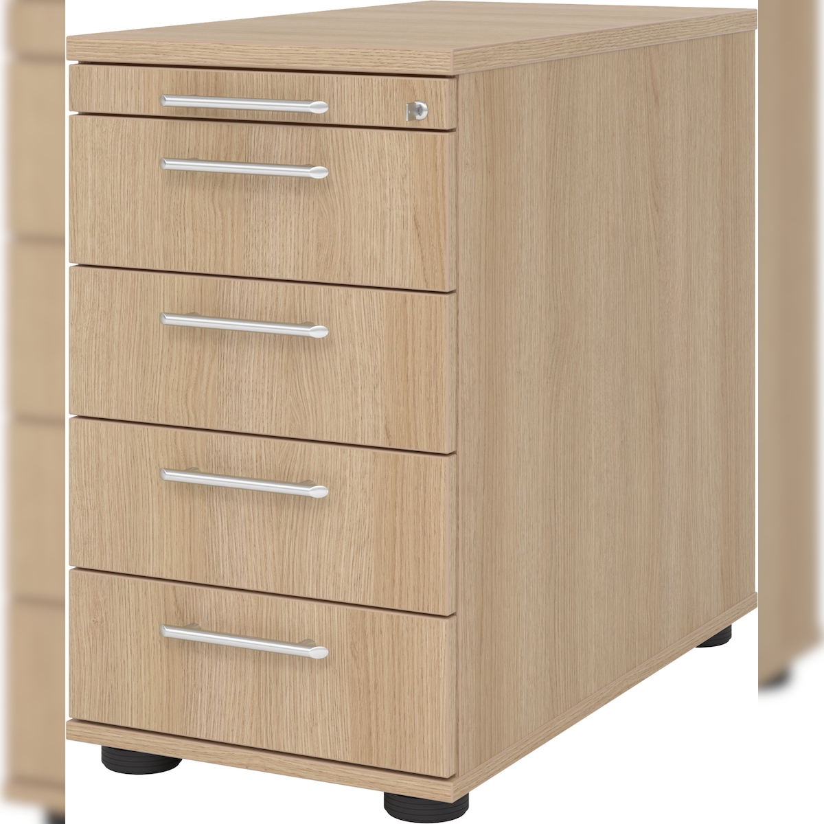 bümö Schreibtisch Schrank abschließbar, Schubladenschrank Holz in Eiche, Container mit Schubladen - Schubladen Schrank Büro, Schreibtisch Container