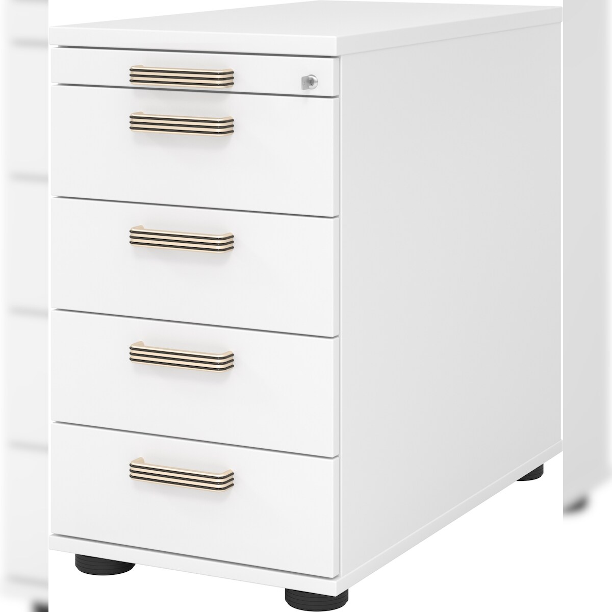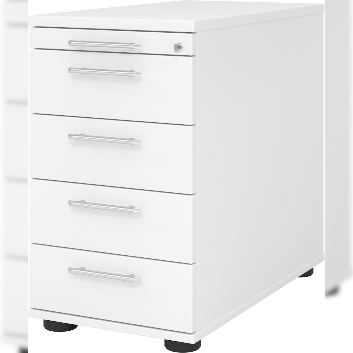 bümö Schreibtisch Schrank abschließbar, Schubladenschrank Holz in weiß, Container mit Schubladen - Schubladen Schrank Büro, Schreibtisch Container