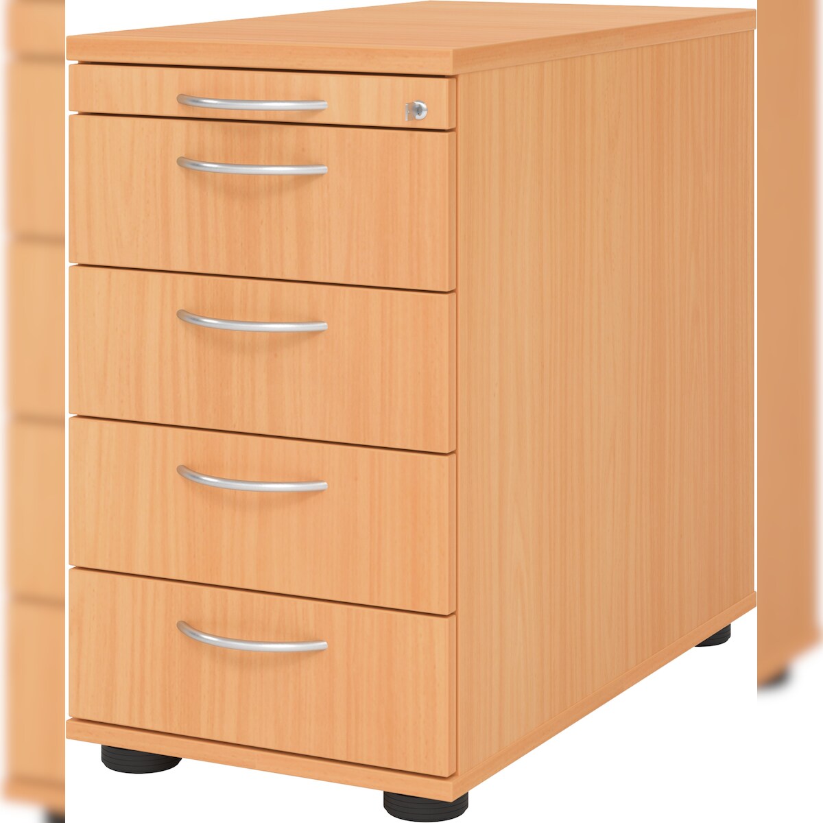 bümö Schreibtisch Schrank abschließbar, Schubladenschrank Holz in Buche, Container mit Schubladen - Schubladen Schrank Büro, Schreibtisch Container
