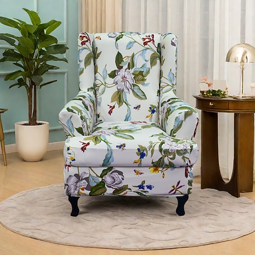 Copripoltrona con schienale alto, copripoltrona in poliestere stampato con motivi geometrici a righe floreali, copripoltrona pieghevole in stile coreano moderno, copripoltrona