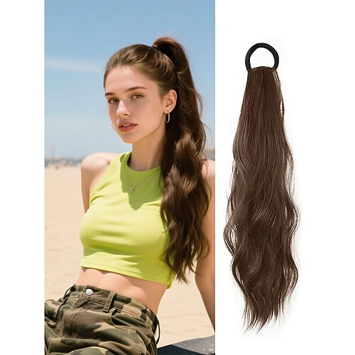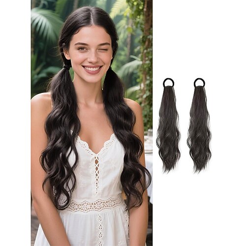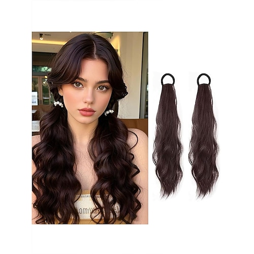 Extension per coda di cavallo riccia da 2 pezzi con elastico, 17 pollici, resistente, sintetica, naturale, ondulata, extension per coda di cavallo, extension per capelli finti ondulati, per donne, da