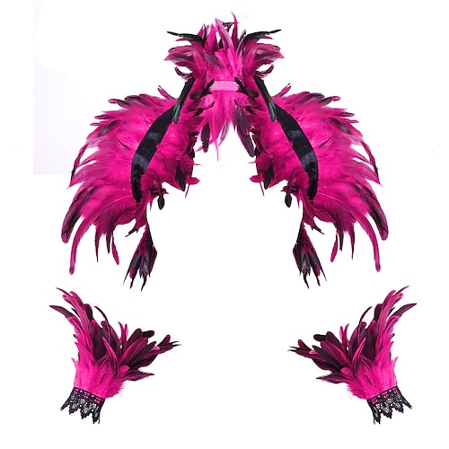 Accessori Samba Carnevale 2026 Rio Carnevale 3 pezzi Set Costume Donna Piume Mantello Piume Gotico Gonna Mini Polsini di Pizzo Lunghi Costume per Festival in Brasile