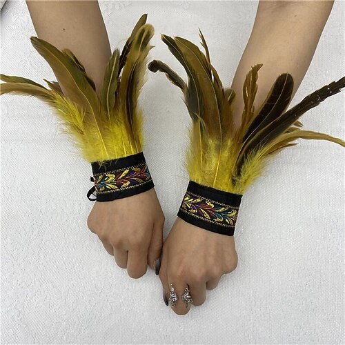 Accessori Samba Carnevale 2026 Rio Carnevale Polsini Piume Nere Donna con Nastro Ricamato Vintage Costume per Festival in Brasile