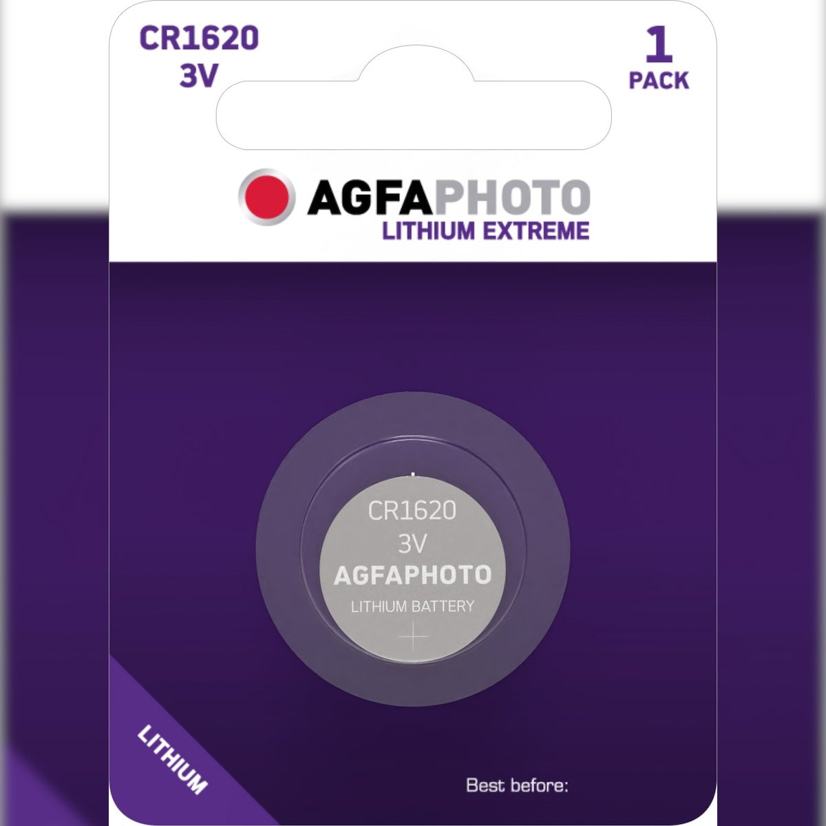 Agfaphoto Batterie Lithium, Knopfzelle, CR1620, 3V Extreme, Retail Blister (1-Pack)