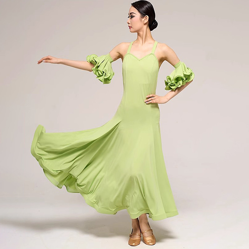 Ballroom Dance Dress Pure Color Splicing Women's Performance Party Sleeveless Crystal Cotton