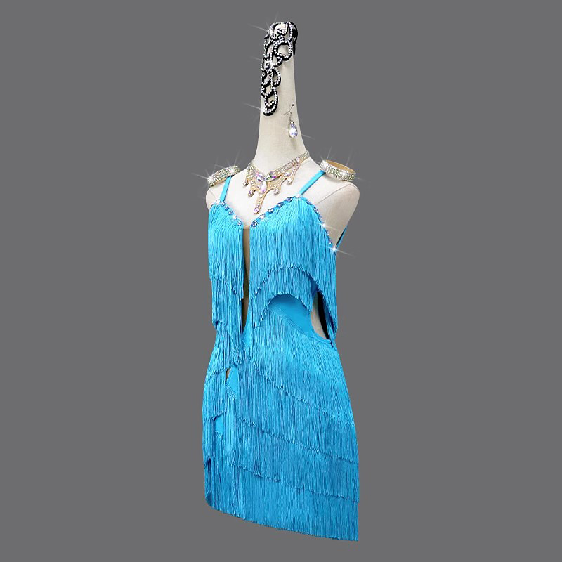 Latin Dance Dress Crystal / Rhinestone Tassel Pure Color Women's Performance Party Sleeveless Spandex