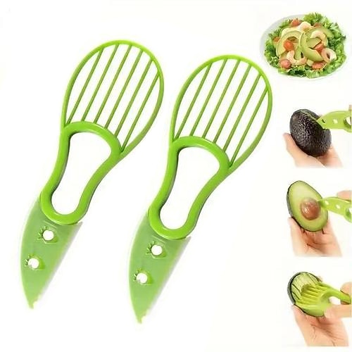 Affetta avocado 2 pezzi - Strumento 3 in 1 per una preparazione facile e veloce dell'avocado, perfetto per l'uso all'aperto e in cucina, sicuro e comodo