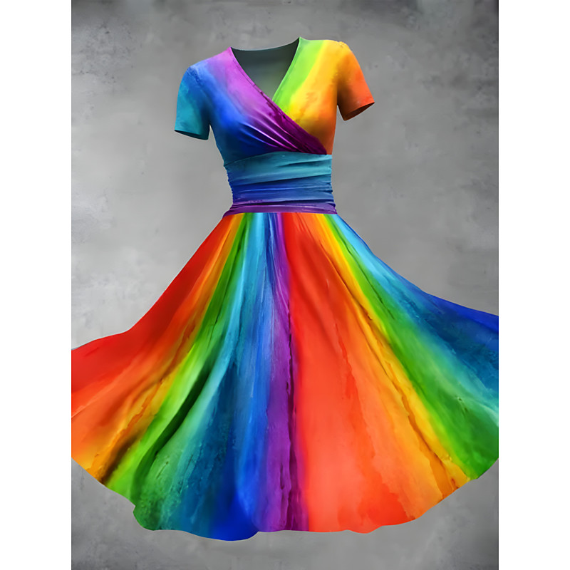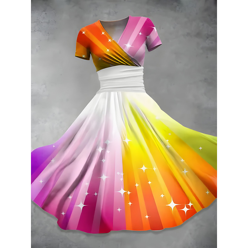 Women's Graphic Print V Neck Midi Dress Elegant Tropical Home Date Short Sleeve Summer