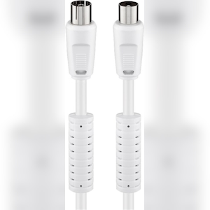 Goobay 50723 Antennenkabel mit Ferrite (80 dB), 2x geschirmt, 1.5 m, Weiß - Koax-Stecker > Koax-Buchse (vollständig geschirmt)