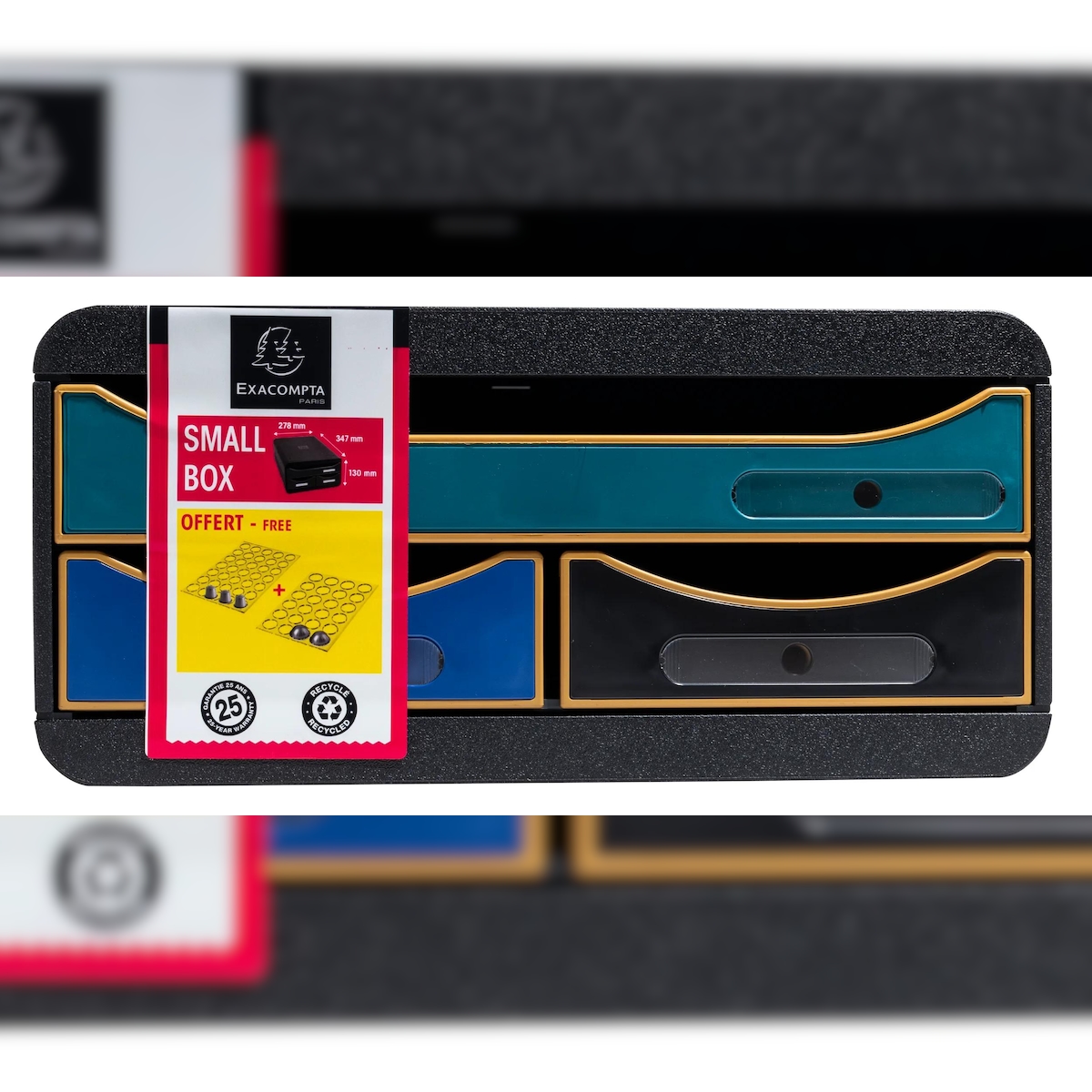 Exacompta 311505D Small Box, Schubladenbox mit 3 Schubladen, Neo Deco - Mehrfarbig