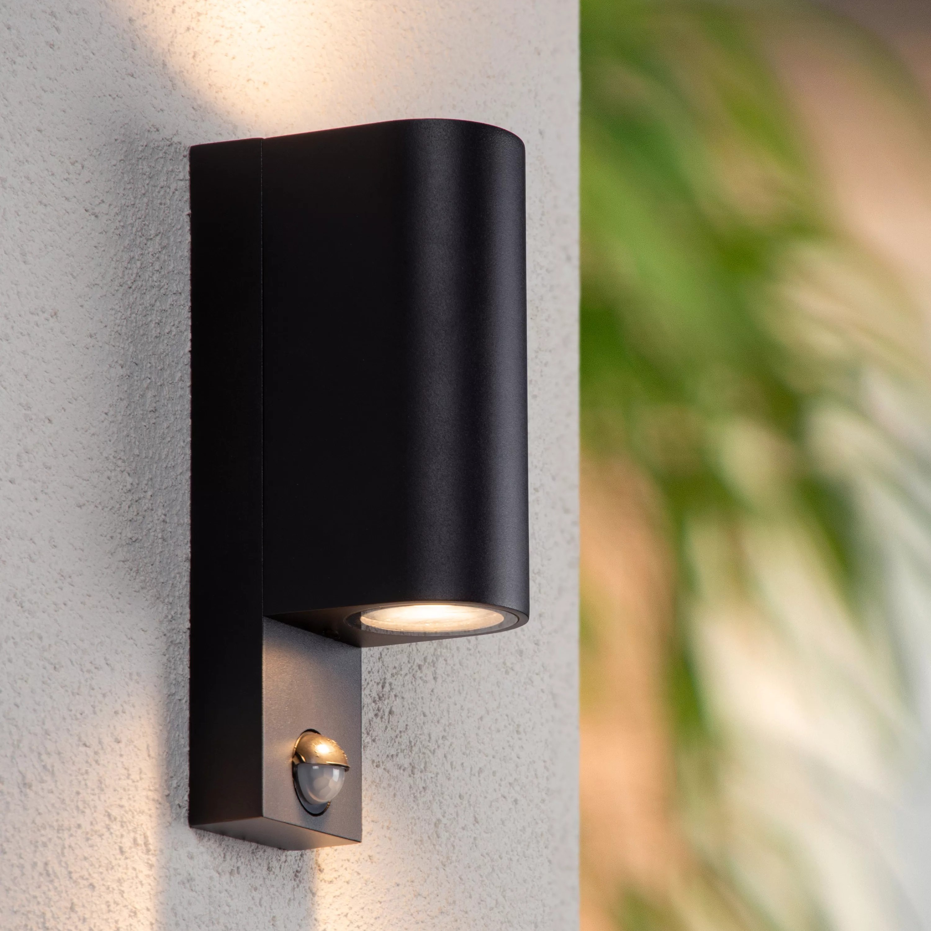 Lucide Zaro Round - applique murale extérieure avec détecteur - 7 x 10,4 x 23 cm - IP65 - noir